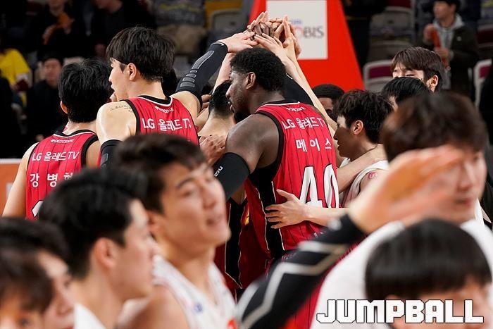 [점프볼=창원/유용우 기자] 01일 창원 실내체육관에서 열린 '2018-2019 SKT 5GX 프로농구' 창원 LG와 부산 KT의 6강 플레오프 5차전 경기,LG가 106-86으로 승리하며 4강 플레이오프에 진출하였다.