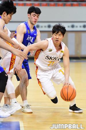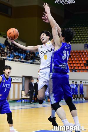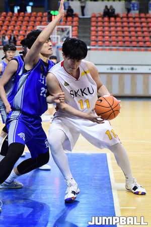 [점프볼=서울/박상혁 기자] 3일 한양대학교 올림픽 체육관에서 2019 KUSF 대학농구 U-리그 한양대와 성균관대의 경기가 열렸다. 성균관대 김상준 감독이 선수들에게 지시를 내리고 있다.