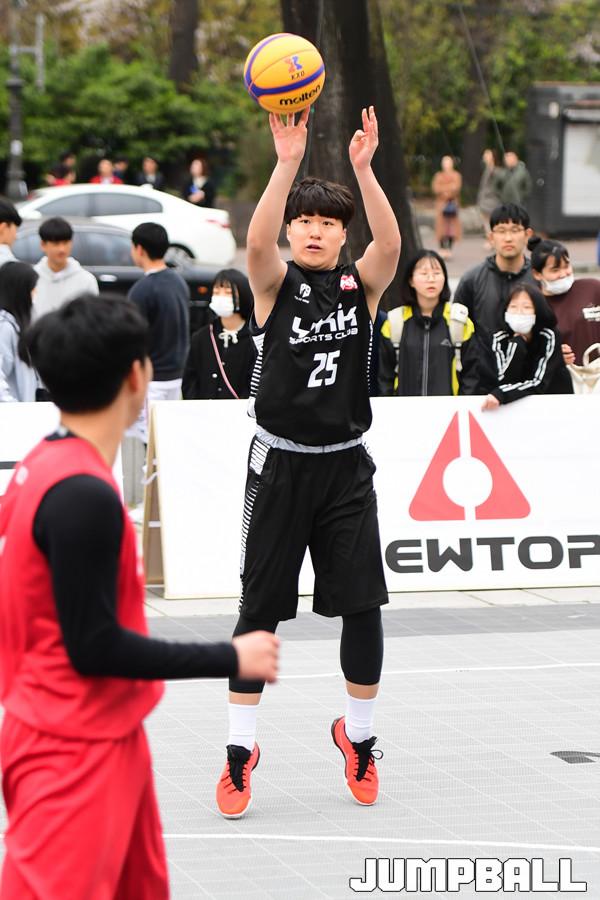 [점프볼=서울/박상혁 기자] 6일 서울 대학로 마로니에 공원에서 2019 KXO리그 1라운드 겸 KXO 3x3 서울투어가 열렸다. 경기에 참가한 와이키키팀 선수가 슛을 던지고 있다.