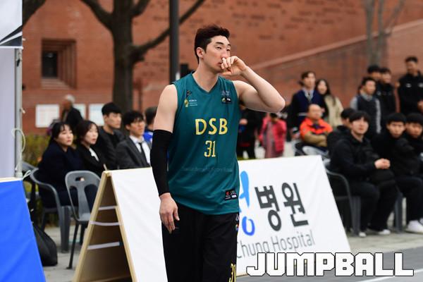[점프볼=서울/박상혁 기자] 6일 서울 대학로 마로니에 공원에서 2019 KXO리그 1라운드 겸 KXO 3x3 서울투어가 열렸다. DSB 신윤하가 경기도중 부상에도 불구하고 경기에 출전하였다.