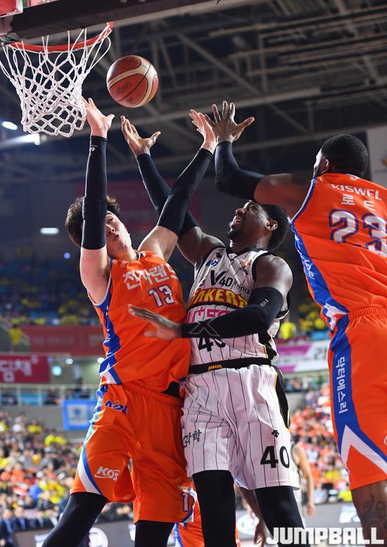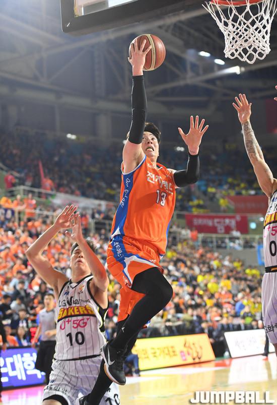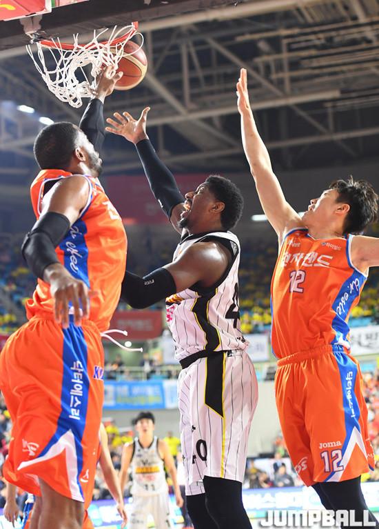 찰스 로드가 27득점 7리바운드 3어시스트, 기디 팟츠가 22득점 2리바운드 1스틸로 완벽한 쌍포를 이루며 이날 승리를 합작했다. 여기에 이대헌(19득점 2리바운드), 정효근(13득점 6리바운드 2어시스트), 강상재(10득점 4리바운드 3어시스트 1스틸) 등 국내 포워드 라인의 지원사격까지 든든했다. 박찬희도 7득점 7리바운드 8어시스트 2스틸로 트리플더블에 가까운 활약을 선보였다.