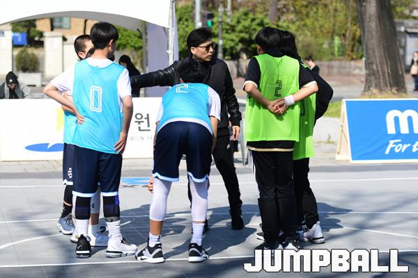 [점프볼=서울/박상혁 기자] 7일 서울 대학로 마로니에 공원에서 2019 KXO리그 1라운드 겸 KXO 3x3 서울투어 2일차 경기가 열렸다. U-15 선수들이 경기 시작전 심판의 지시 사항을 듣고 있다.
