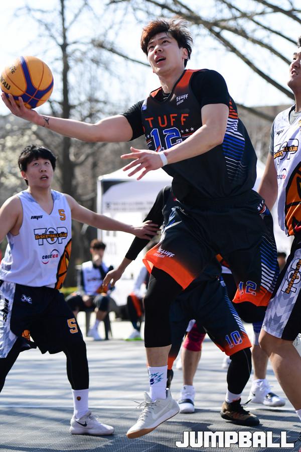 [점프볼=서울/박상혁 기자] 7일 서울 대학로 마로니에 공원에서 2019 KXO리그 1라운드 겸 KXO 3x3 서울투어 2일차 경기가 열렸다. 와이키키 스포츠 이현승이 골밑까지 들어와 레이업 슛을 올리고 있다.