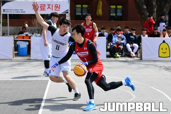[점프볼=서울/박상혁 기자] 7일 서울 대학로 마로니에 공원에서 2019 KXO리그 1라운드 겸 KXO 3x3 서울투어 2일차 경기가 열렸다. 한울건설 조용준이 돌파를 시도하고 있다.