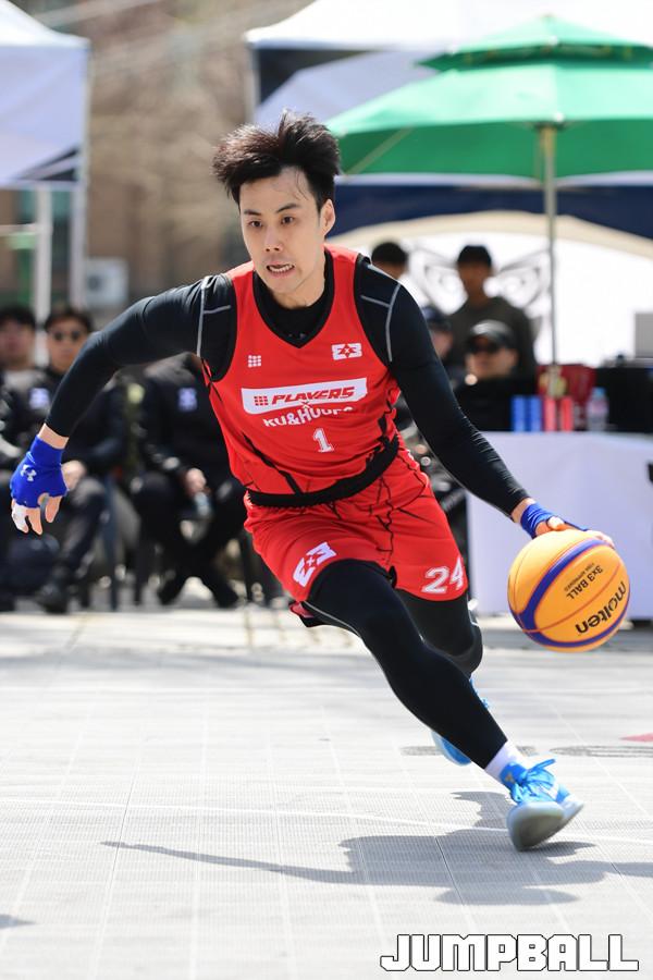 [점프볼=서울/박상혁 기자] 7일 서울 대학로 마로니에 공원에서 2019 KXO리그 1라운드 겸 KXO 3x3 서울투어 2일차 경기가 열렸다. 한울건설 조용준이 골밑으로 들어가고 있다.