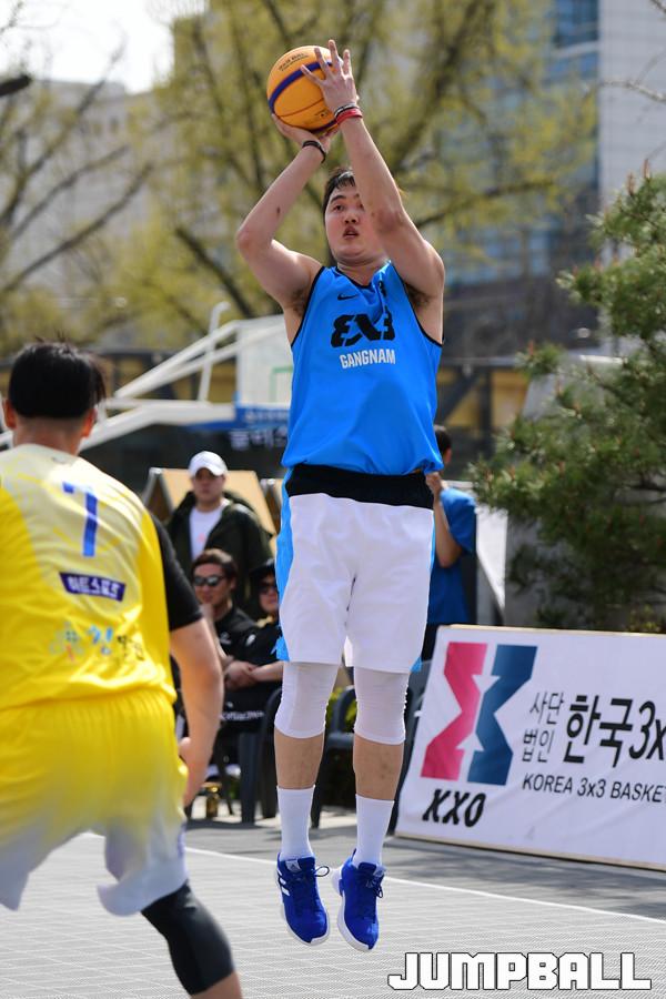 [점프볼=서울/박상혁 기자] 7일 서울 대학로 마로니에 공원에서 2019 KXO리그 1라운드 겸 KXO 3x3 서울투어 2일차 경기가 열렸다. 리그 4강전에서 하늘내린 하도현이 점프슛을 시도하고 있다.