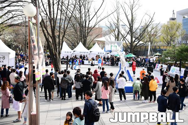 [점프볼=서울/박상혁 기자] 7일 서울 대학로 마로니에 공원에서 2019 KXO리그 1라운드 겸 KXO 3x3 서울투어 2일차 경기가 열렸다. 하늘내린팀과 한울건설팀의 리그 결승전 경기 관전을 위해 마로니에 공원을 찾은 시민들과 팬들로 경기장이 가득 메워졌다.