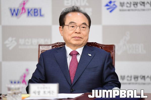 [JB포토] BNK 썸 여자프로농구단 창단 기자회견장에 참석한 오거돈 부산시장