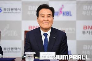 [점프볼=부산/박상혁 기자] 8일 부산시청 26층 회의실에서 BNK 썸 여자프로농구단 창단 기자회견이 열렸다. 오거돈 부산시장과 김지완 BNK금융그룹 회장, 이두호 BNK캐피탈 대표, 유영주 신임감독, 최윤아 신임코치, 양지희 신임코치가 밝은 표정으로 기념 촬영을 하고 있다.