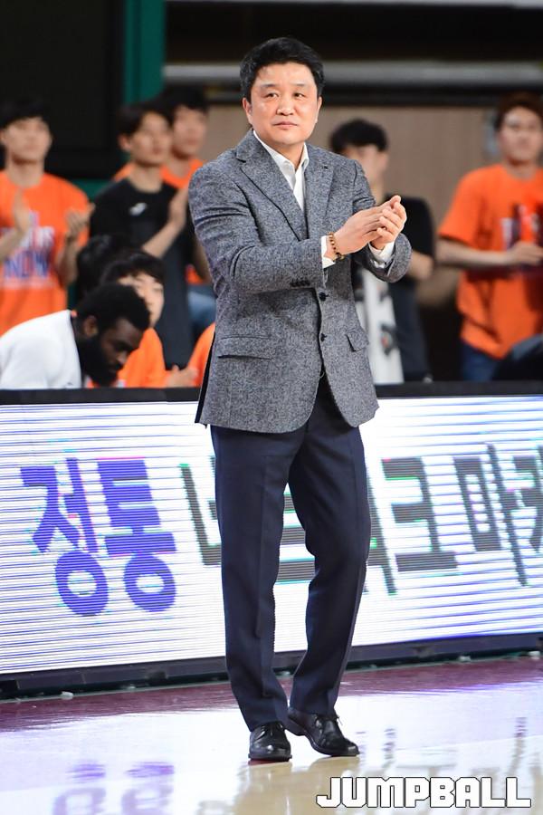 [점프볼=창원/박상혁 기자] 8일 창원실내체육관에서 2018-2019 SKT 5GX 프로농구 창원 LG와 인천 전자랜드의 4강 플레이오프 경기가 열렸다. 전자랜드 유도훈 감독이 선수들을 독려하고 있다.
