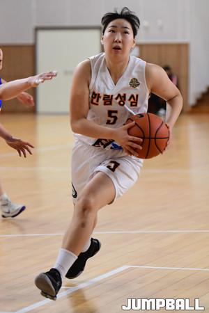 [점프볼=부산/박상혁 기자] 9일 경암실내체육관에서 2019 KUSF 대학농구 U-리그 여자부 부산대와 한림성심대의 경기가 열렸다. 한림성심대 용지수가 골밑으로 들어가고 있다.