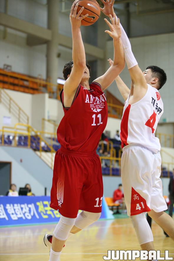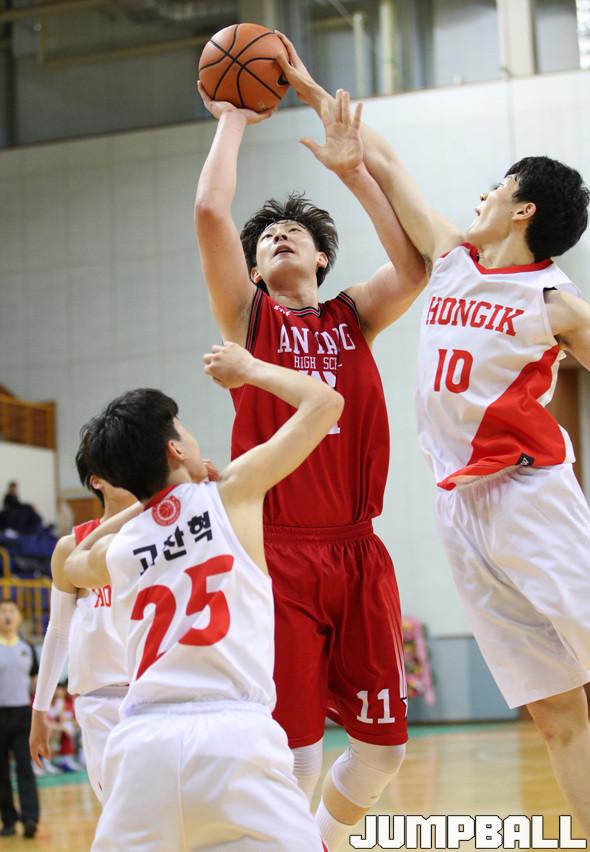 10일 영광 스포티움에서 열린 제44회 협회장기 전국남녀중고 농구대회 남고부 결선 경기, 안양고가 접전 끝에 82-81로 춘계연맹전 우승팀은 홍대부고를 꺾고 8강에 입성했다.
