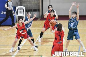 [점프볼=춘천/문복주 기자] 12일 춘천 한림성심대학교체육관에서 열린 '2019 KUSF 대학농구 U-리그' 한림성심대와 광주대의 경기. 한림성심대 배유라가 골밑에서 공격리바운드를 다투고 있다.