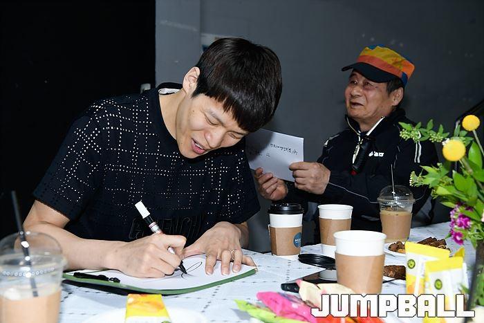 [JB포토] 전달식 마치고 싸인지 전달하는 SK 김선형