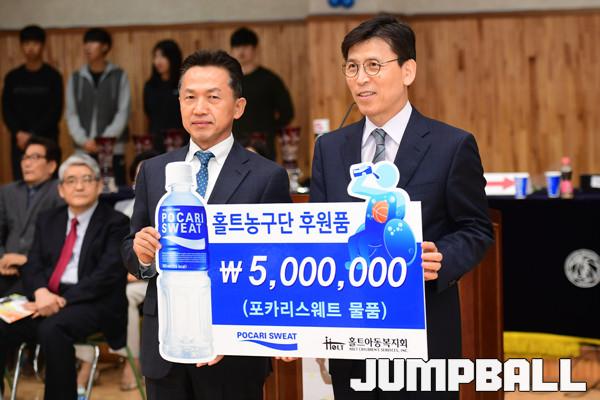 [점프볼=고양/박상혁 기자] 19일 고양시 홀트 장애인 종합체육관에서 제 25회 홀트 전국 휠체어 농구대회가 열렸다. 포카리스웨트에서 후원품을 전달하였다.