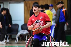 [점프볼=고양/박상혁 기자] 19일 고양시 홀트 장애인 종합체육관에서 제 25회 홀트 전국 휠체어 농구대회가 열렸다. 수원무궁화전자 방세훈이 선수를 진정시키고 있다.