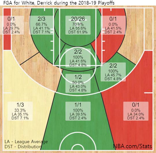 #2018-2019시즌 PO 3경기 데릭 화이트 야투성공률 분포도(*19일 기준)