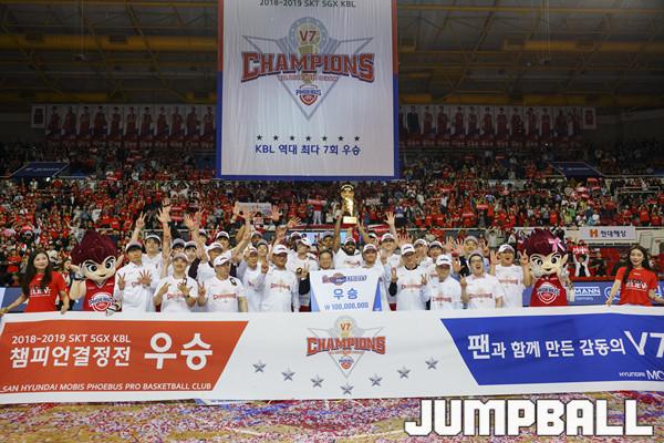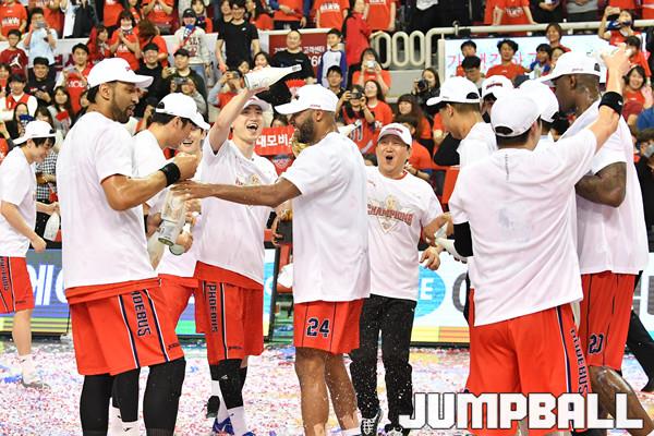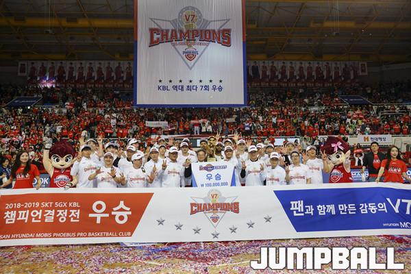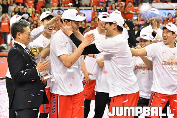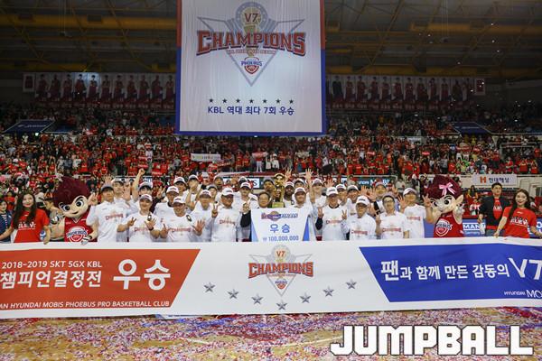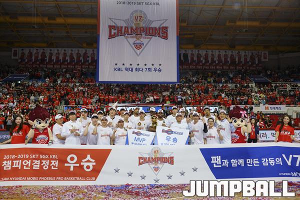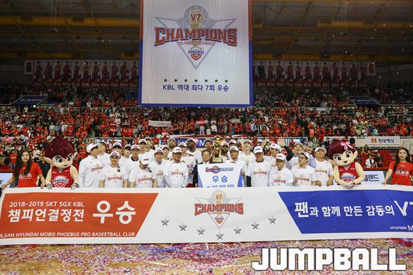 [점프볼=울산/홍기웅 기자] 21일 울산동천체육관에서 열린 '2018-2019 SKT 5GX 프로농구' 챔피언결정전 5차전 울산 현대모비스와 인천 전자랜드의 경기에서 현대모비스가 92-84로 승리를 거둬 통합우승을 달성했다. 현대모비스 우승 세레모니 화보.