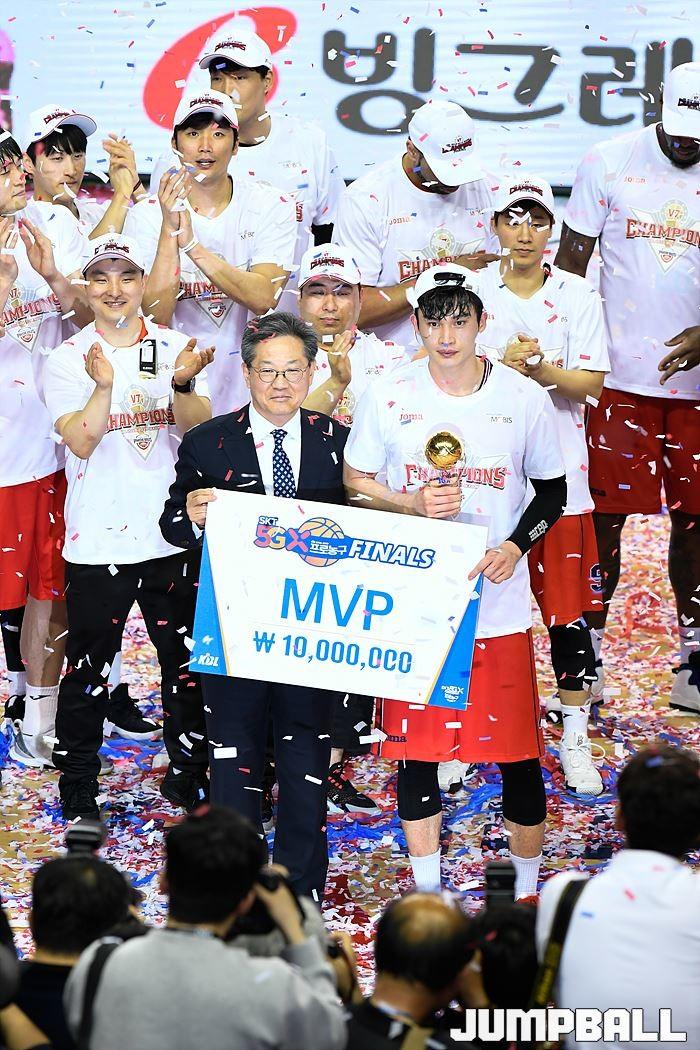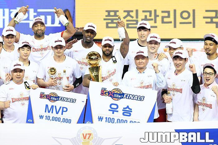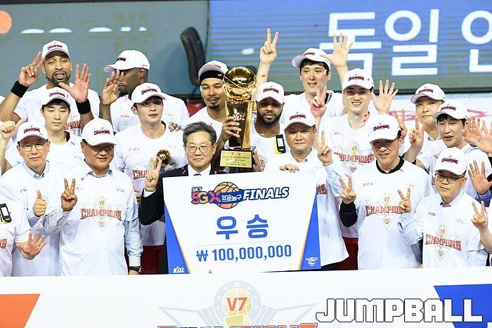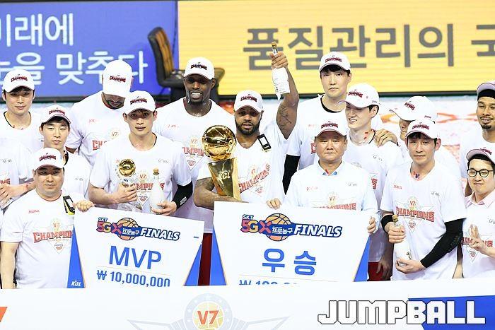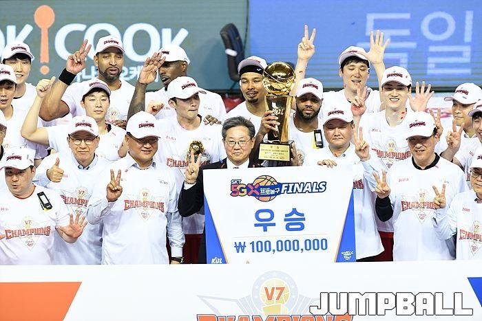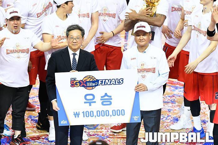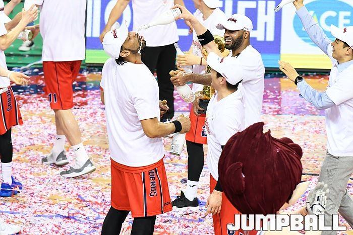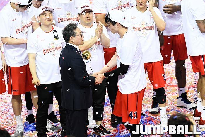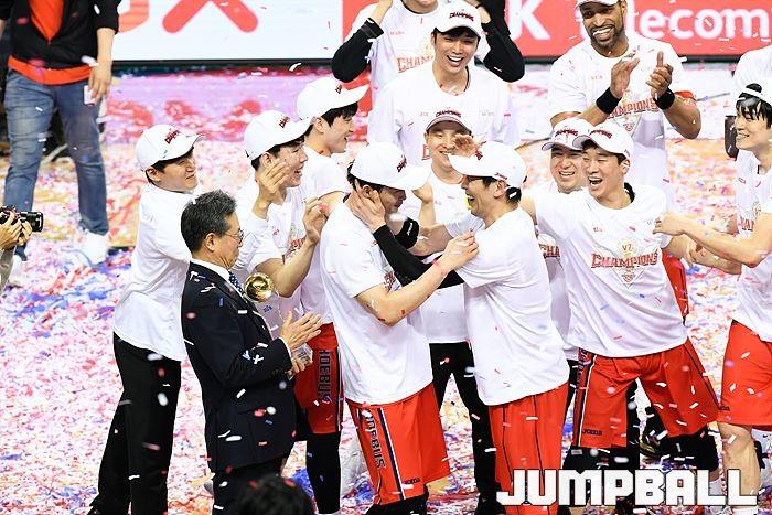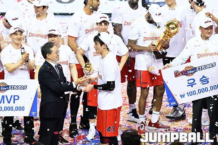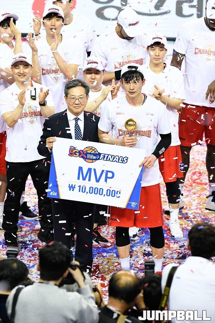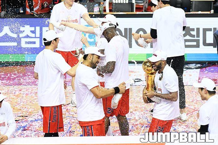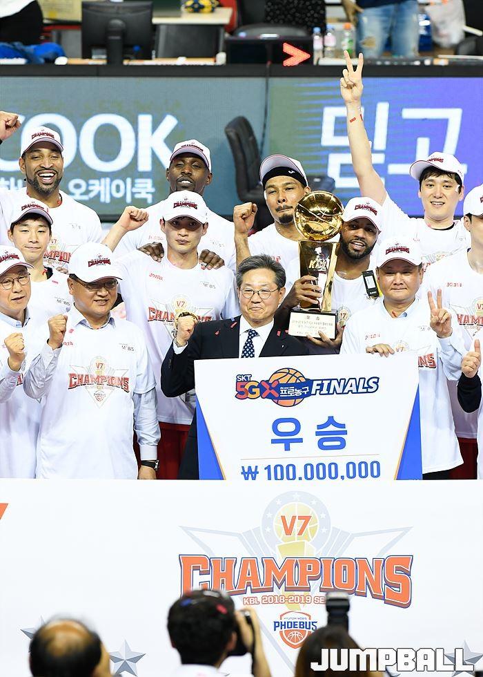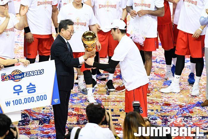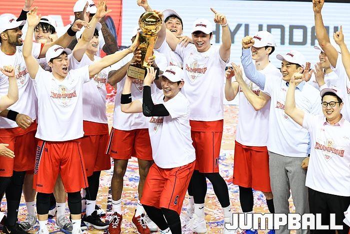 [점프볼=울산/유용우 기자] 21일 울산동천체육관에서 열린 '2018-2019 SKT 5GX 프로농구' 챔피언결정전 5차전 울산 현대모비스와 인천 전자랜드의 경기에서 현대모비스가 92-84로 승리를 거둬 통합우승을 달성했다. 현대모비스와 전자랜드 챔피언결정전 5차전 시상식 화보
