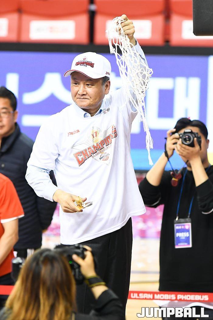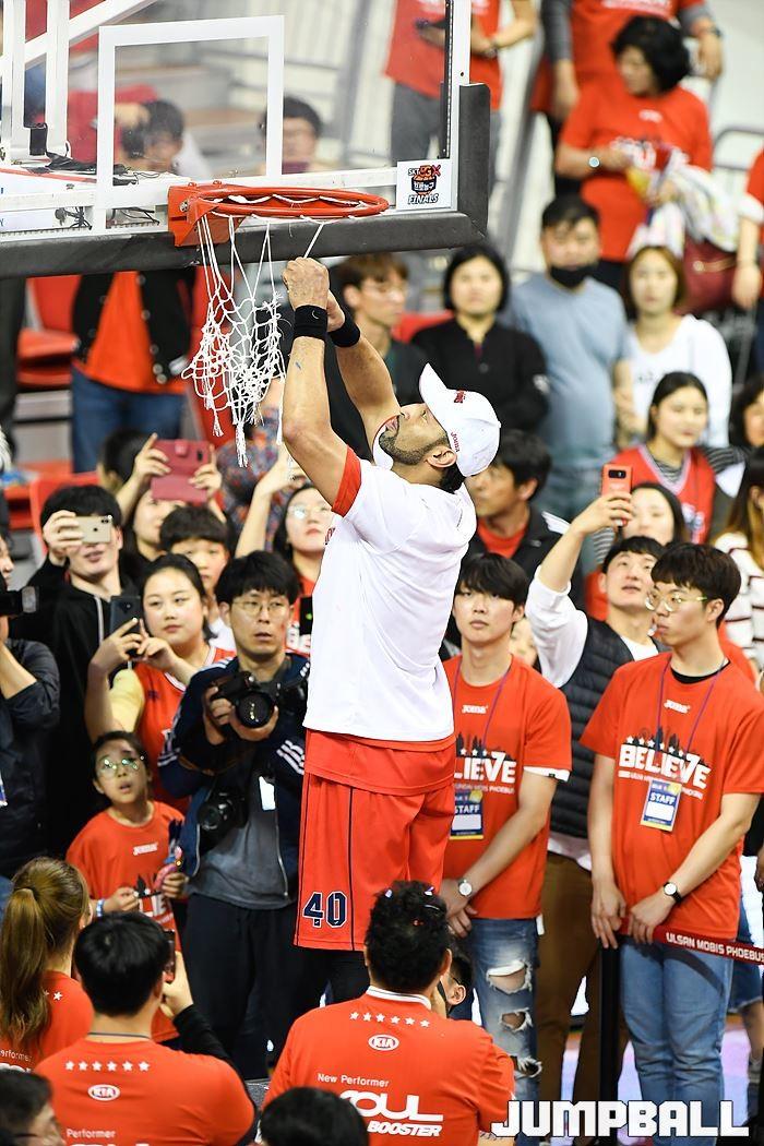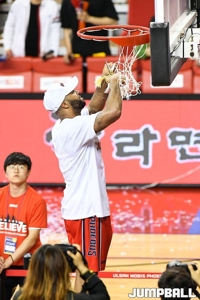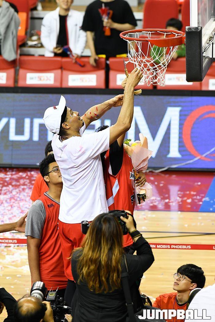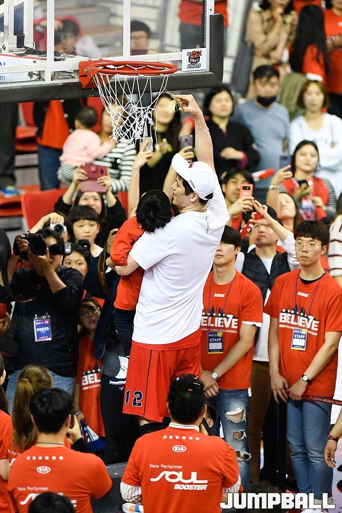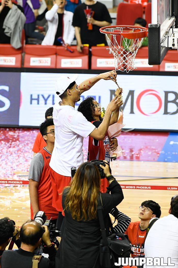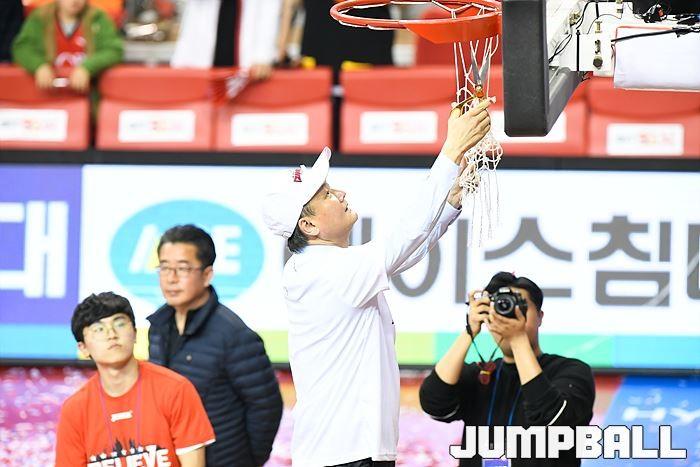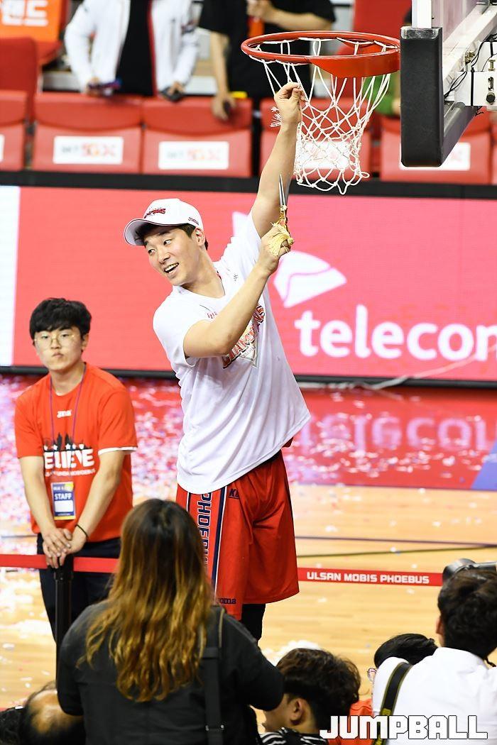 [점프볼=울산/홍기웅, 유용우 기자] 21일 울산동천체육관에서 열린 '2018-2019 SKT 5GX 프로농구' 챔피언결정전 5차전 울산 현대모비스와 인천 전자랜드의 경기에서 현대모비스가 92-84로 승리를 거둬 통합우승을 달성했다. 현대모비스 그물 컷팅식 화보.