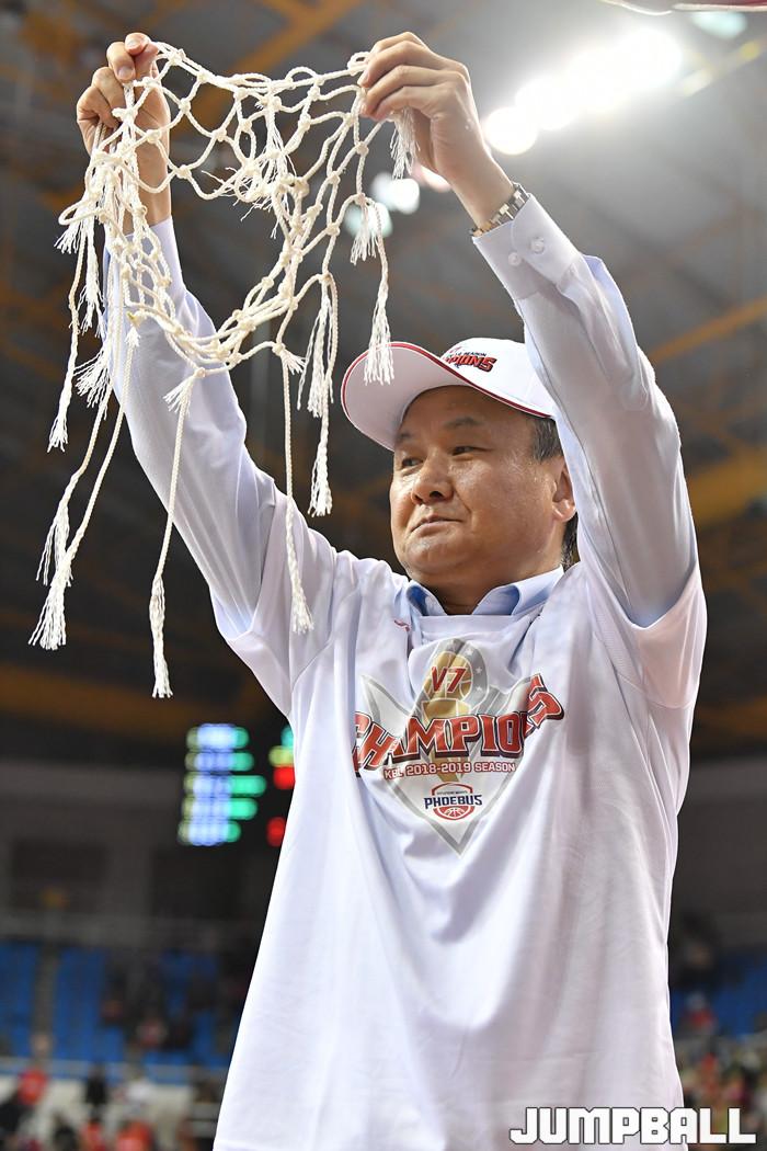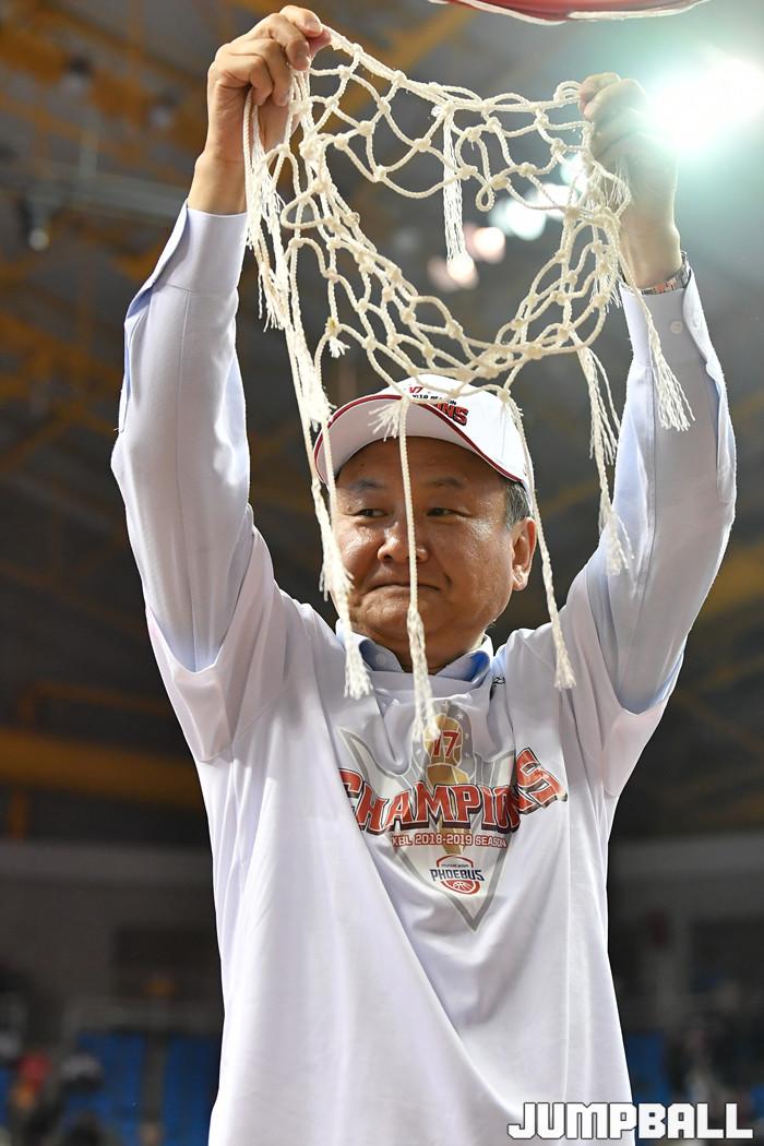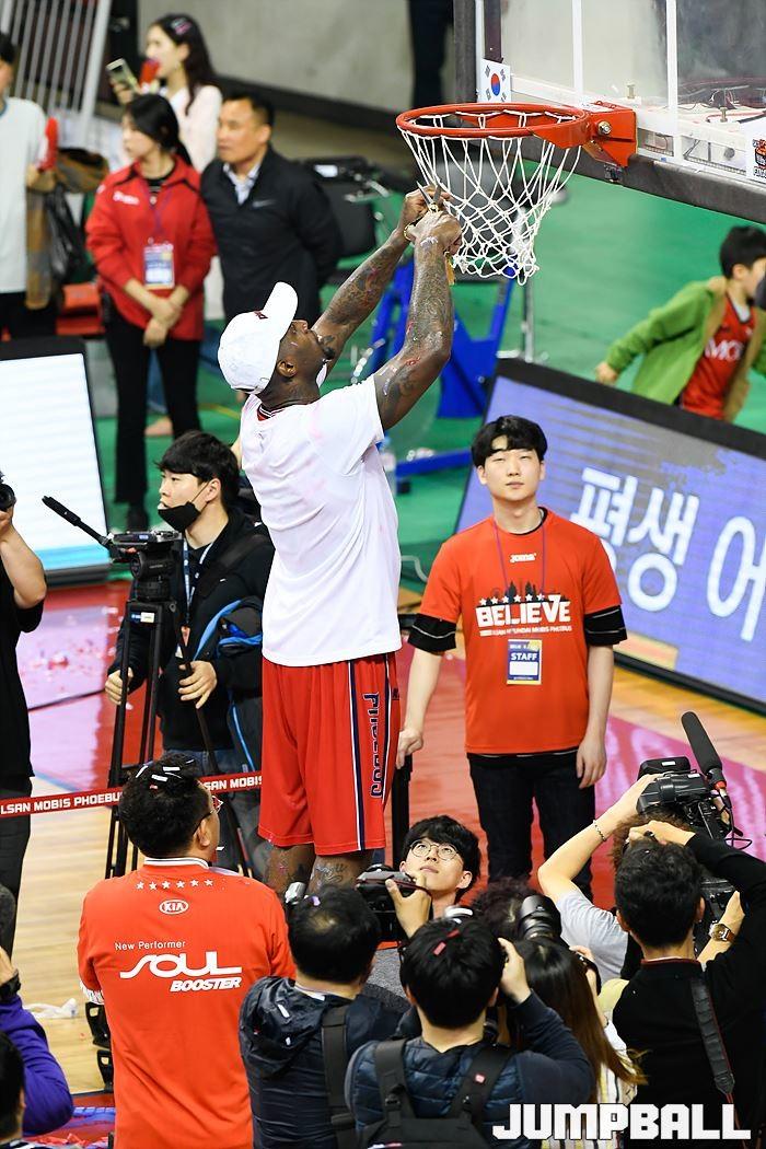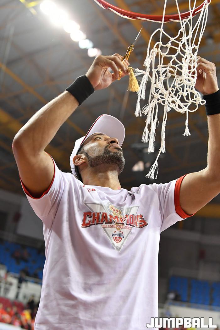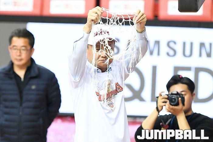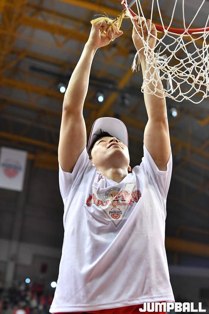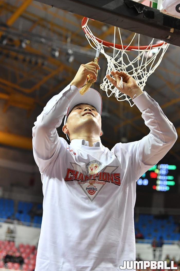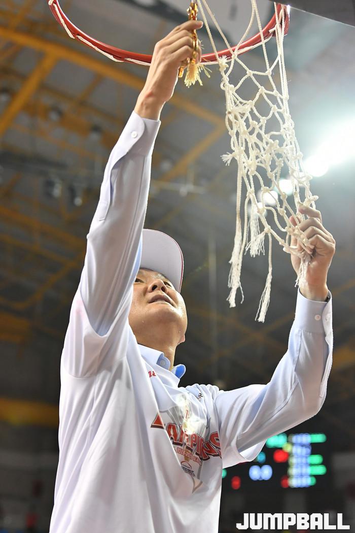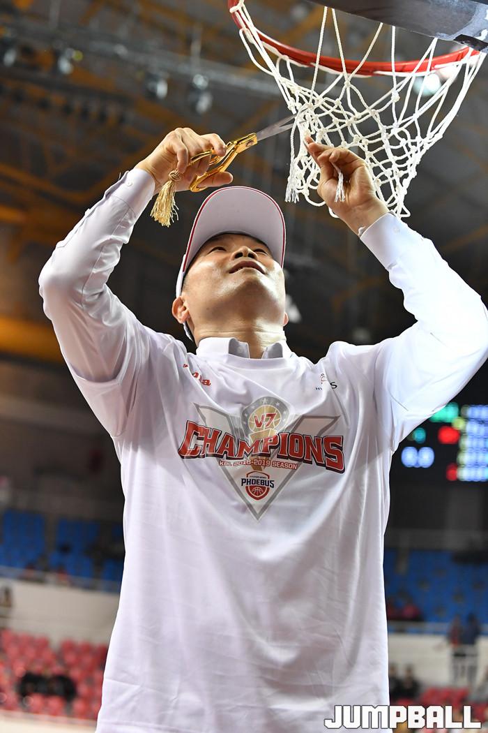 [점프볼=울산/홍기웅, 유용우 기자] 21일 울산동천체육관에서 열린 '2018-2019 SKT 5GX 프로농구' 챔피언결정전 5차전 울산 현대모비스와 인천 전자랜드의 경기에서 현대모비스가 92-84로 승리를 거둬 통합우승을 달성했다. 현대모비스 그물 컷팅식 화보.