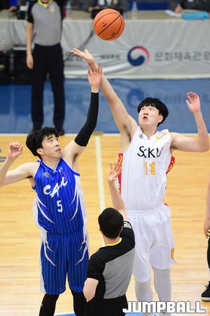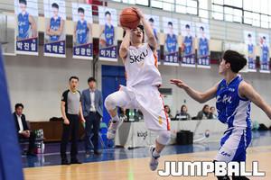 [점프볼=안성/박상혁 기자] 22일 중앙대 안성캠퍼스에서 2019 KUSF 대학농구 U-리그 중앙대와 성균관대의 경기가 열렸다. 성균관대 이윤기가 슛을 시도하고 있다.