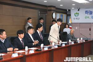 [점프볼=인제/문복주 기자] 26일 오후 4시 인제군청 소회의실에서 하늘내린인제 3x3 농구단 창단식으로 최상기 인제군수를 비롯해 이성규 인제부군수, 김상만 인제군의회의장, 방열 대한민국농구협회장, 백용현 부회장, 김용진 사무차장, 강환영 강원도농구협회장, 정한신 3x3 국가대표팀 감독, 김선길 인제군농구협회장 등 20여 명의 관계자들이 참가했다.