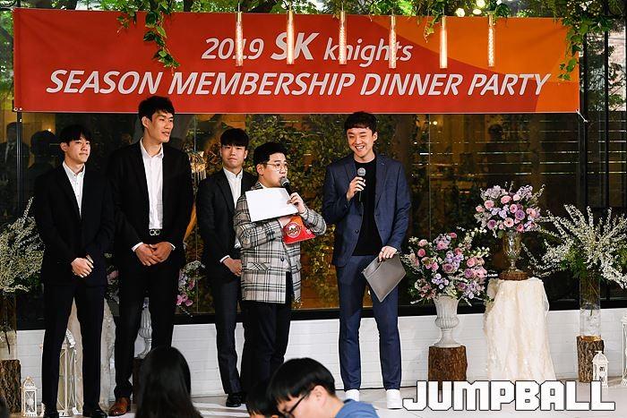 [점프볼=논현/유용우 기자] 28일 강남구 논현동에 위치한 보네르하우스에서 SK 나이츠 농구단이 시즌권 회원들과 함께하는 디너 파티를 가졌다. 시즌 멤버쉽을 위한 팬행사로 비시즌 선수들의 근황 인터뷰, 경품 추첨,테이블 레크리에이션을 즐기고, 함께 사진도 찍으며 팬과 선수단이 하나가 되는 행사이다.