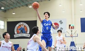 [점프볼=안성/문복주 기자] 30일 안성 중앙대학교체육관에서 열린 '2019 KUSF 대학농구 U-리그' 중앙대와 경희대의 경기, 경희대 박세원이 골밑 사이드로 파고들어 백슛을 시도하고 있다.