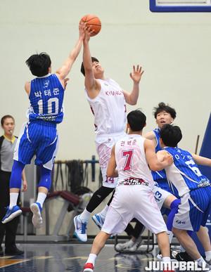 [점프볼=안성/문복주 기자] 30일 안성 중앙대학교체육관에서 열린 '2019 KUSF 대학농구 U-리그' 중앙대와 경희대의 경기, 경희대 최재화가 중앙대의 강압수비를 뚫고 있다.