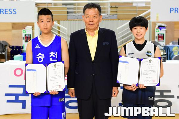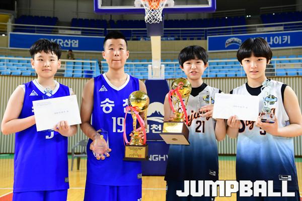 [점프볼=김천/박상혁 기자] 22일부터 30일까지 김천실내체육관과 김천실내보조체육관에서 열린 제 18회 대한민국농구협회장배 전국초등학교 농구대회. 여초부에서는 수정초교가 남초부에서는 송천초교가 각각 신길초교와 연가초교에 승리하며 우승을 차지하였다. 대회마지막날 시상식 화보.