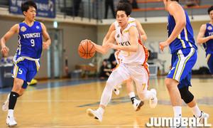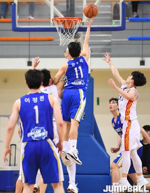 [점프볼=서울/박상혁 기자] 2일 한양대 올림픽 체육관에서 열린 '2019 KUSF 대학농구 U-리그' 한양대와 건국대의 경기. 건국대 최형욱이 골밑까지 들어와 레이업슛을 올리고 있다.