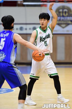[점프볼=서울/박상혁 기자] 2일 한양대 올림픽 체육관에서 열린 '2019 KUSF 대학농구 U-리그' 한양대와 건국대의 경기. 건국대 이용우가 슛을 올리고 있다.