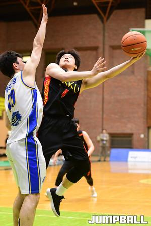 [점프볼=수원/박상혁 기자] 7일 수원 성균관대학교에서 열린 '2019 KUSF 대학농구 U-리그 성균관대와 한양대의 경기, 성균관대 이재우가 부상으로 코트 바닥에 누워있다.