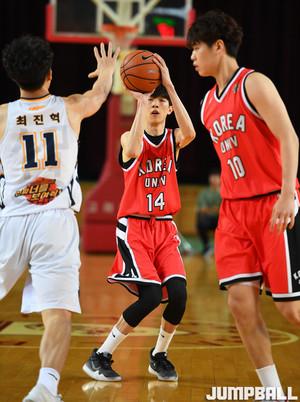 [점프볼=안암/문복주 기자] 8일 고려대 화정체육관에서 열린' 2019 KUSF 대학농구 U-리그' 고려대와 상명대의 경기, 고려대 신민석이 외곽에서 3점슛을 시도하고 있다.