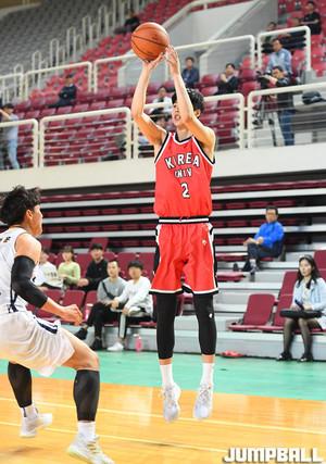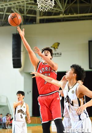[점프볼=안암/문복주 기자] 8일 고려대 화정체육관에서 열린' 2019 KUSF 대학농구 U-리그' 고려대와 상명대의 경기, 고려대 박정현이 골밑으로 굿어시스트를 하고 있다.