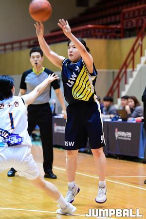 [점프볼=화성/박상혁 기자] 9일 수원대 체육관에서 열린 2019 KUSF 대학농구 U-리그 수원대와 한림성심대의 경기가 열렸다. 한림성심대 배유라가 리바운드를 잡아내고 있다.