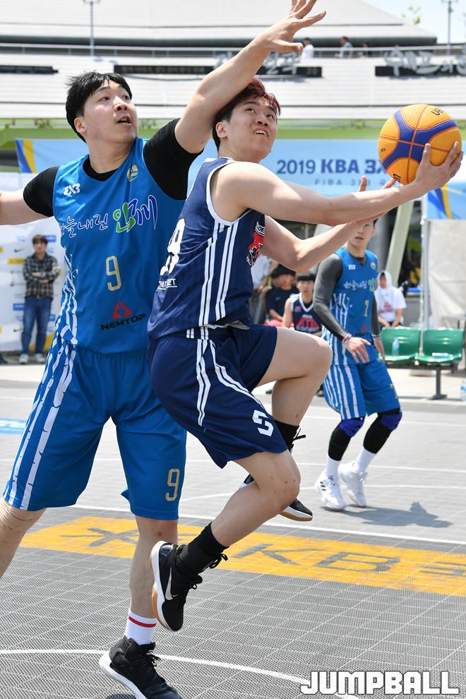 [점프볼=광주/홍기웅 기자] 11일 광주 금호터미널 유스퀘어광장 특설코트에서 열린 '2019 KBA 3X3 코리아 투어' 코리아리그 하늘내린인제와 ATB 경기. ATB가 리버스 레이업을 시도하고 있다.