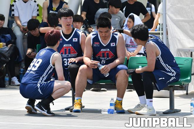 [점프볼=광주/홍기웅 기자] 11일 광주 금호터미널 유스퀘어광장 특설코트에서 열린 '2019 KBA 3X3 코리아 투어' 코리아리그 하늘내린인제와 ATB 경기. ATB가 작전타임을 이용해 서로 격려하고 있다.