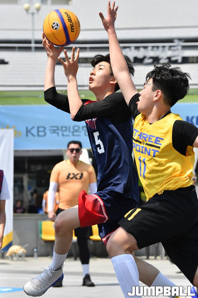 [점프볼=광주/홍기웅 기자] 12일 광주 금호터미널 유스퀘어광장 특설코트에서 열린 '2019 KBA 3X3 코리아 투어' U15 3POINTS와 Wizards의 경기. Wizards가 골밑슛을 올려넣고 있다.