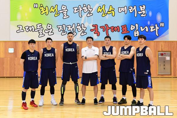 [점프볼=진천/박상혁 기자] 14일 진천선수촌에 FIBA 3x3 아시아컵을 대비한 2019 대표팀(이승준, 장동영, 박진수, 김동우)의 훈련 현장을 찾았다. 3X3 국가대표팀 정한신 감독과 선수들이 단체 촬영을 하고 있다.