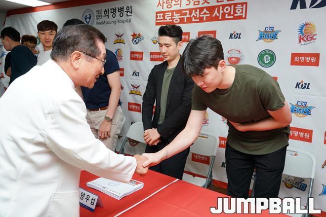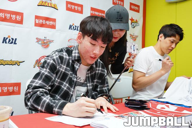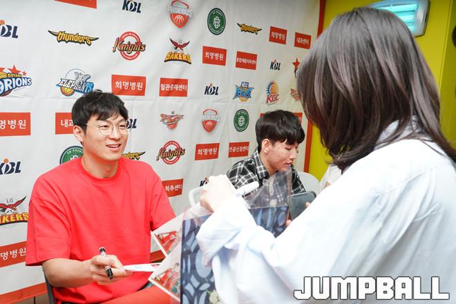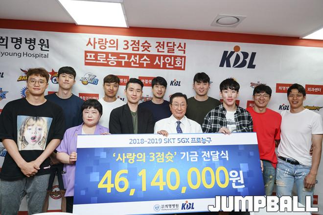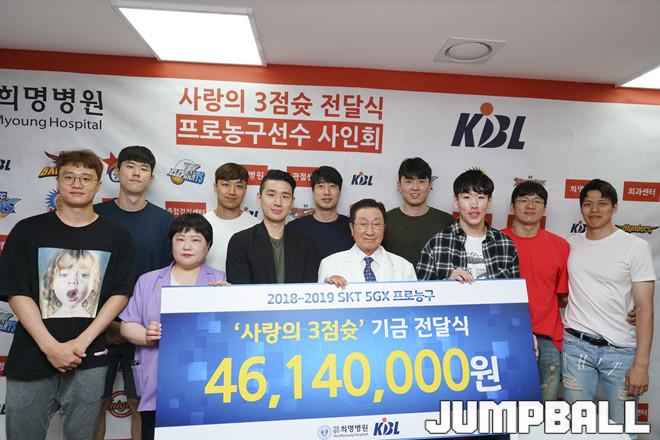 [점프볼=시흥동/홍기웅 기자] KBL은 18일 희명병원과 함께하는 '사랑의 3점슛' 캠페인 기금 전달식 및 KBL 주요선수 사인회를 시흥동에 위치한 희명병원에서 진행했다.