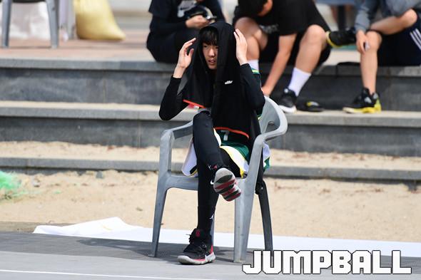 [점프볼=부산/박상혁 기자] 25일 부산 광안리 해수욕장 특설코트에서 열린 2019 KXO리그 2라운드 겸 KXO 3x3 부산투어 1일차 경기, 선수 대기석에서 대기중인 선수가 무더위에 옷으로 햇볕을 가리고 있다.
