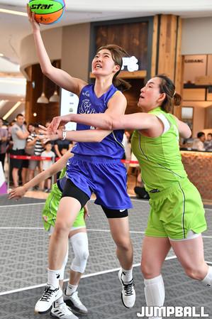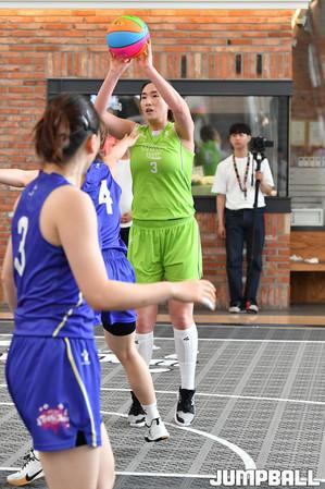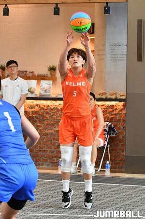 [점프볼=하남/홍기웅 기자] 25일 하남스타필드 특설코트에서 열린 'WKBL 3X3 트리플잼' 신한은행과 이온워터의 경기. 이온워터가 작전타임에 작전을 모의하고 있다.