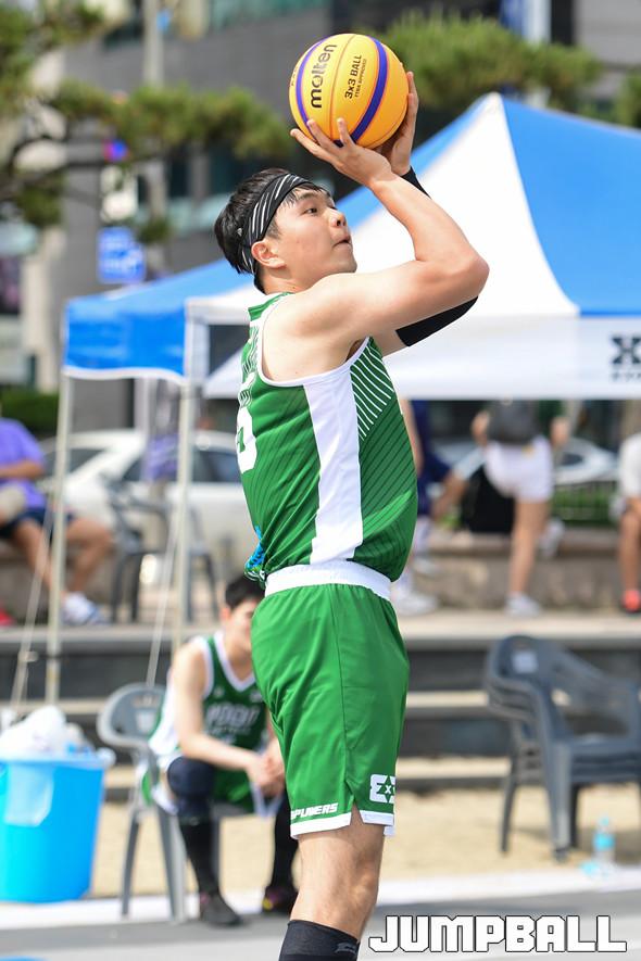 [점프볼=부산/박상혁 기자] 25일 부산 광안리 해수욕장 특설코트에서 열린 2019 KXO리그 2라운드 겸 KXO 3x3 부산투어 1일차 경기, 오픈부 포도컨설팅팀이 미들슛을 시도하고 있다.