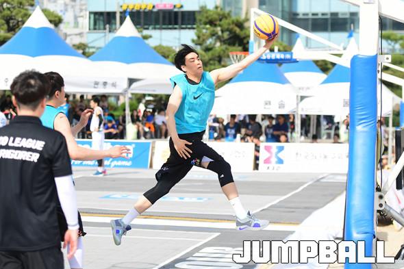 [점프볼=부산/박상혁 기자] 25일 부산 광안리 해수욕장 특설코트에서 열린 2019 KXO리그 2라운드 겸 KXO 3x3 부산투어 1일차 경기, DSB 김훈이 공을 살려내려 하고있다.