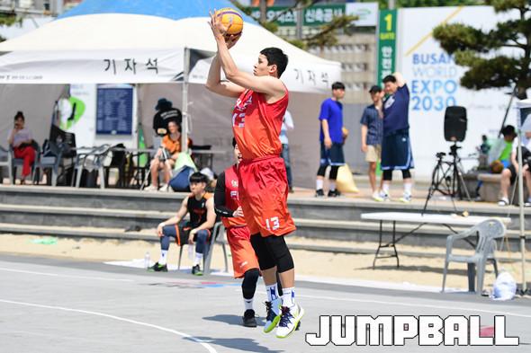 [점프볼=부산/박상혁 기자] 26일 부산 광안리 해수욕장 특설코트에서 열린 2019 KXO리그 2라운드 겸 KXO 3x3 부산투어 2일차 경기, 오픈부 세농대왕이 슛을 시도하고 있다.
