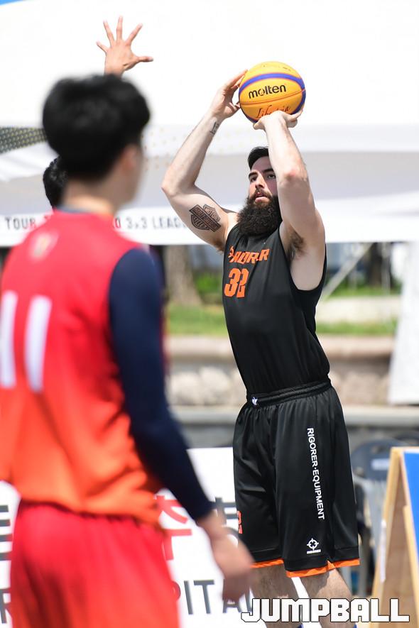 [점프볼=부산/박상혁 기자] 26일 부산 광안리 해수욕장 특설코트에서 열린 2019 KXO리그 2라운드 겸 KXO 3x3 부산투어 2일차 경기, 오픈부 아잇리고러가 미들슛을 시도하고 있다.