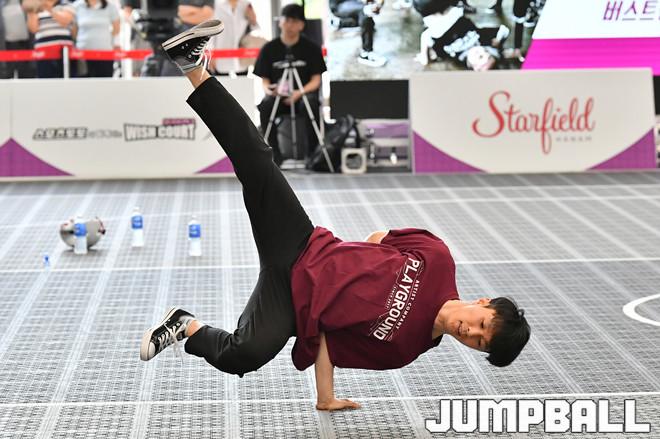[점프볼=하남/홍기웅 기자] 26일 하남스타필드 특설코트에서 열린 'WKBL 3X3 트리플잼'. 비보잉 그룹인 버스트필드가 오프닝 공연으로 비보잉을 펼치고 있다.