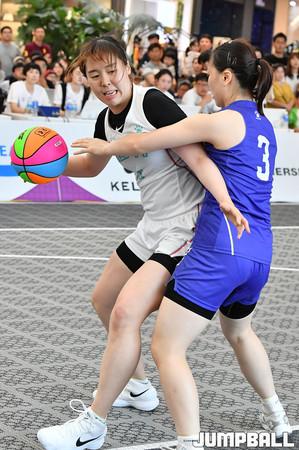 [점프볼=하남/홍기웅 기자] 26일 하남스타필드 특설코트에서 열린 'WKBL 3X3 트리플잼' 이온워터와 켈미의 6강 경기. 이온워터 김향미가 수비 사이에서 힘겹게 골밑슛을 넣고 있다.